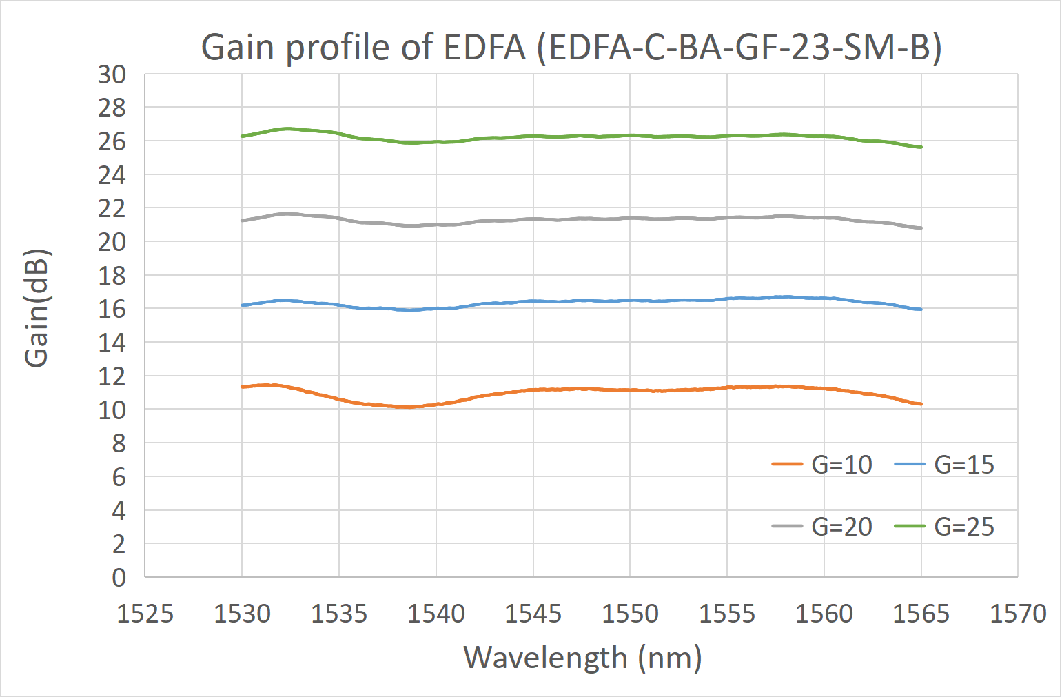 对C波段的10/15/20/25dB增益谱