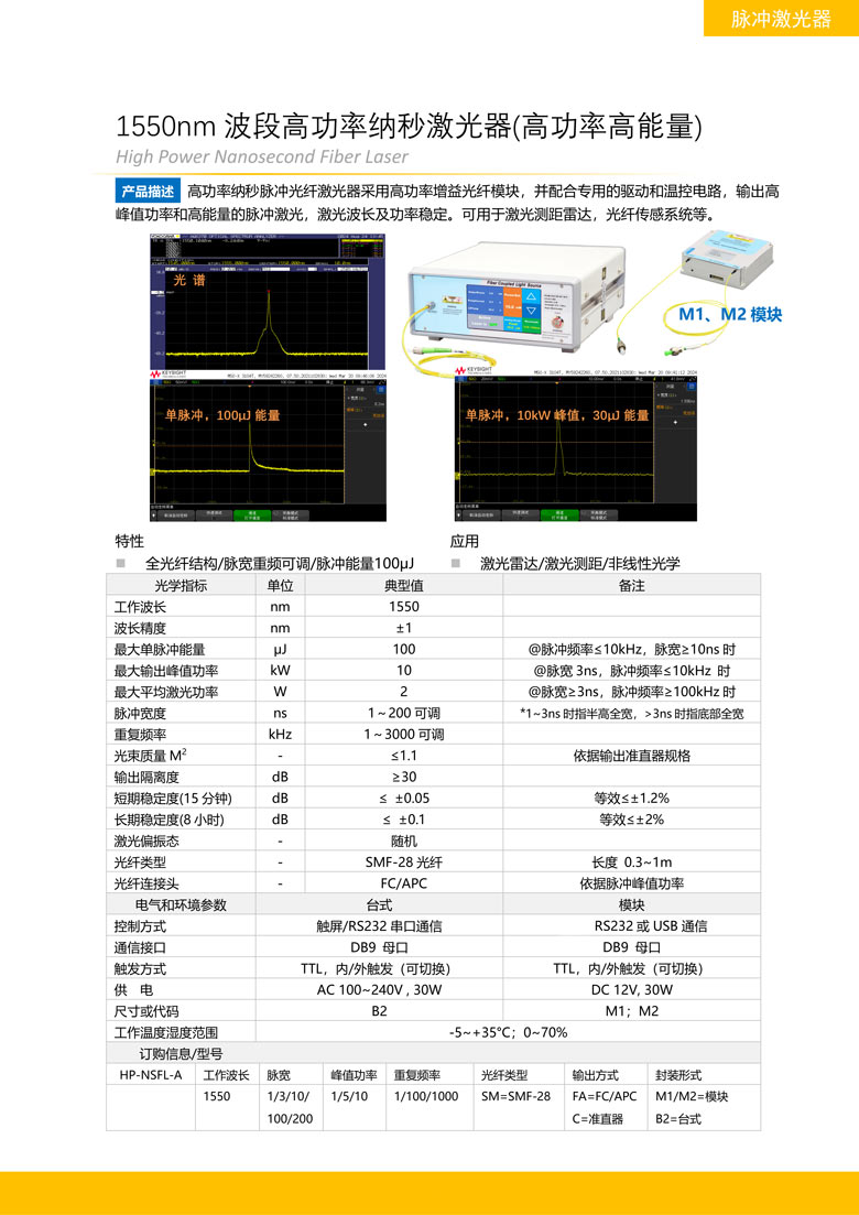 1550nm波段高功率纳秒激光器(高功率高能量)