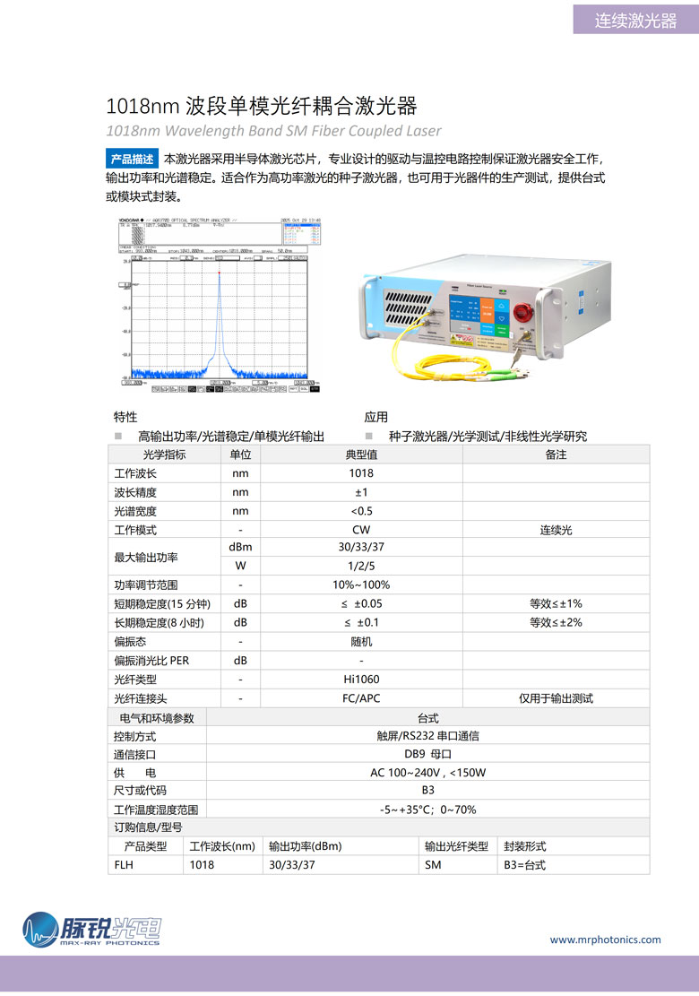 本激光器采用半导体激光芯片,专业设计的驱动与温控电路控制保证激光器安全工作,输出功率和光谱稳定。适合作为高功率激光的种子激光器,也可用于光器件的生产测试,提供台式或模块式封装。