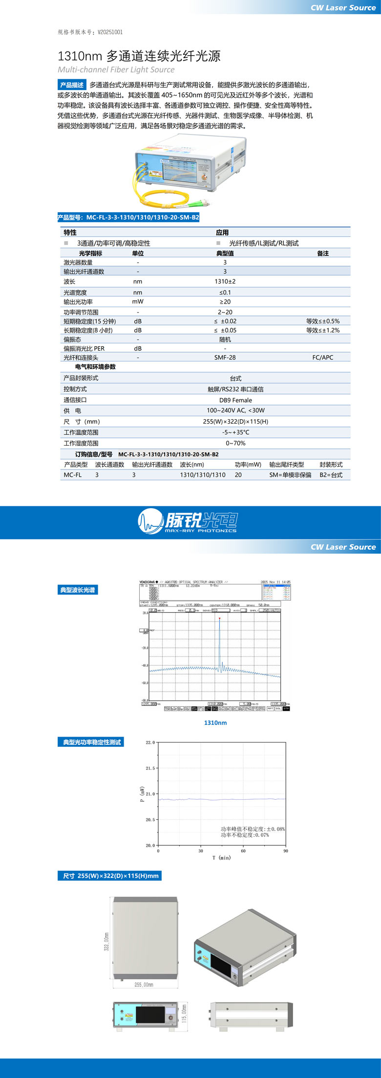 多通道台式光源是科研与生产测试常用设备,能提供多激光波长的多通道输出,或多波长的单通道输出。其波长覆盖 405~1650nm 的可见光及近红外等多个波长,光谱和功率稳定。该设备具有波长选择丰富、各通道参数可独立调控、操作便捷、安全性高等特性。凭借这些优势,多通道台式光源在光纤传感、光器件测试、生物医学成像、半导体检测、机器视觉检测等领域广泛应用,满足各场景对稳定多通道光谱的需求。