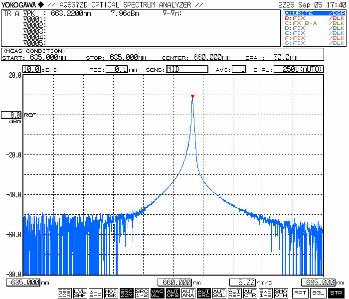 中心波长 | nm | 660 | |||